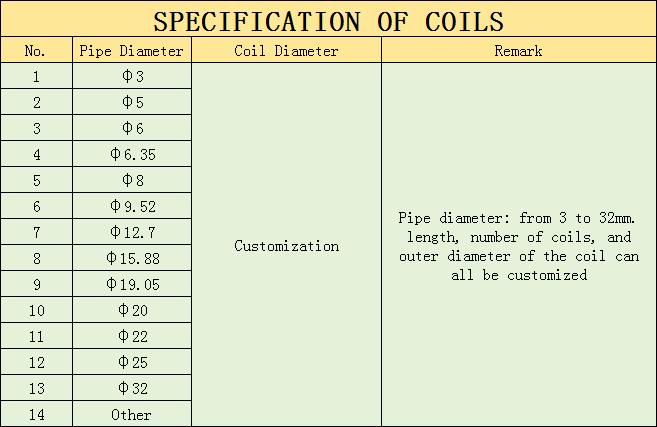 Specification of stainless steel coil pipe